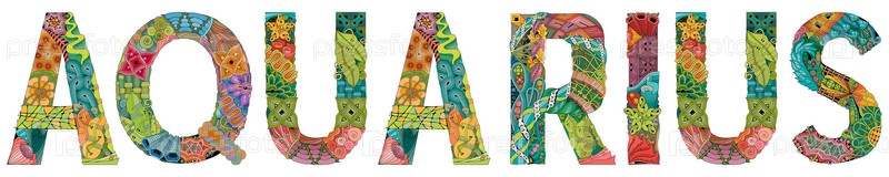 Художественный дизайн ручной росписи. Ручной рисунок слова Водолей для футболки и других украшений