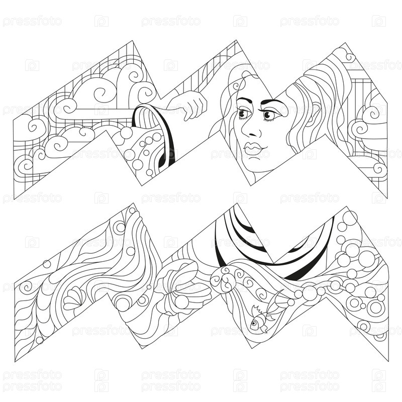 Знак зодиака Водолей, астрологический концепт-арт для окраски. Дизайн татуировки