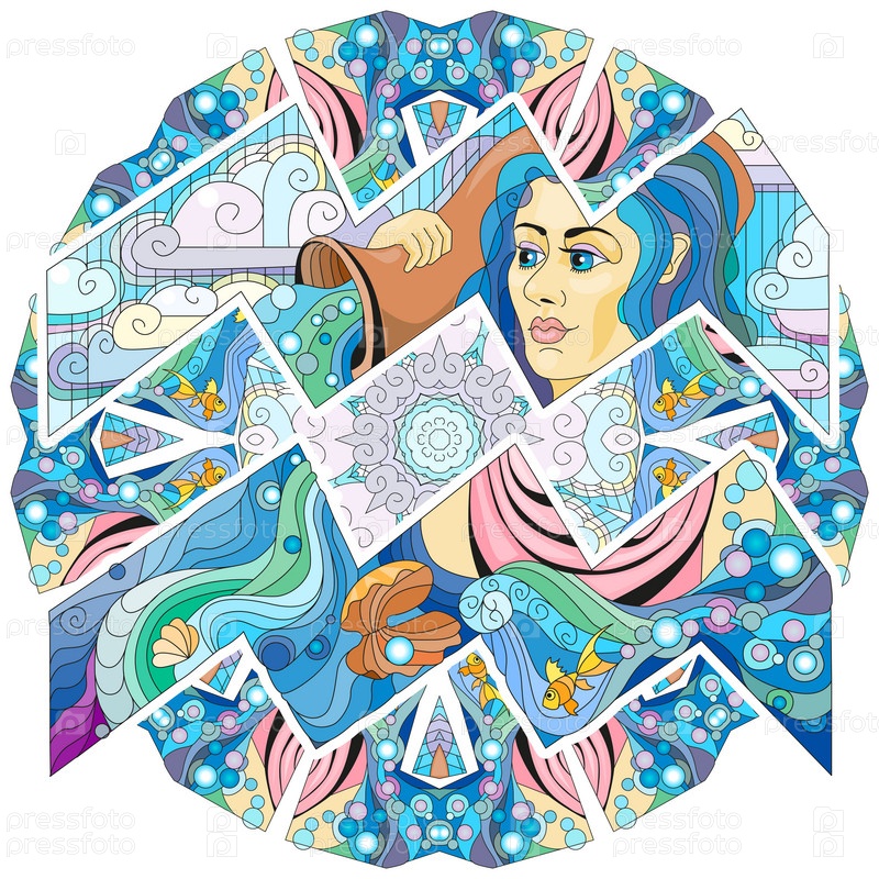 Знак зодиака Водолей с мандалой, астрологический концепт-арт для окраски. Дизайн татуировки