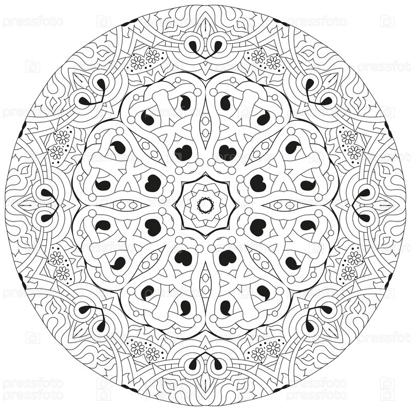 Декоративные круглые украшения. Необычная форма цветка. Восточный вектор, схемы антистрессовой терапии. Переплетение элементов дизайна