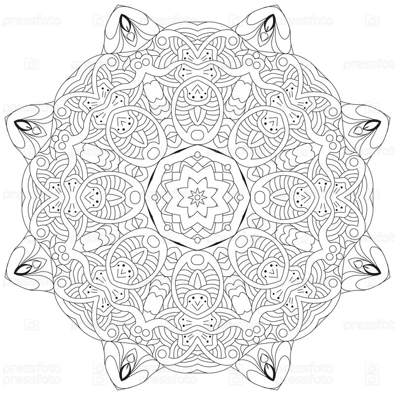 Декоративные круглые украшения. Необычная форма цветка. Восточный вектор, схемы антистрессовой терапии. Переплетение элементов дизайна