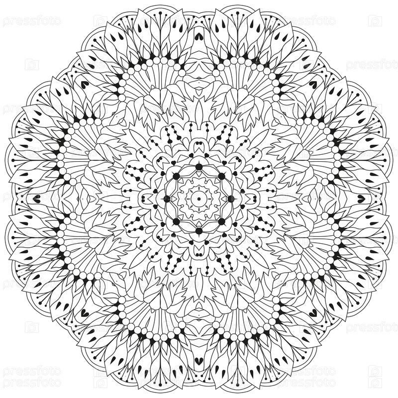 Декоративные круглые украшения. Необычная форма цветка. Восточный вектор, схемы антистрессовой терапии. Переплетение элементов дизайна