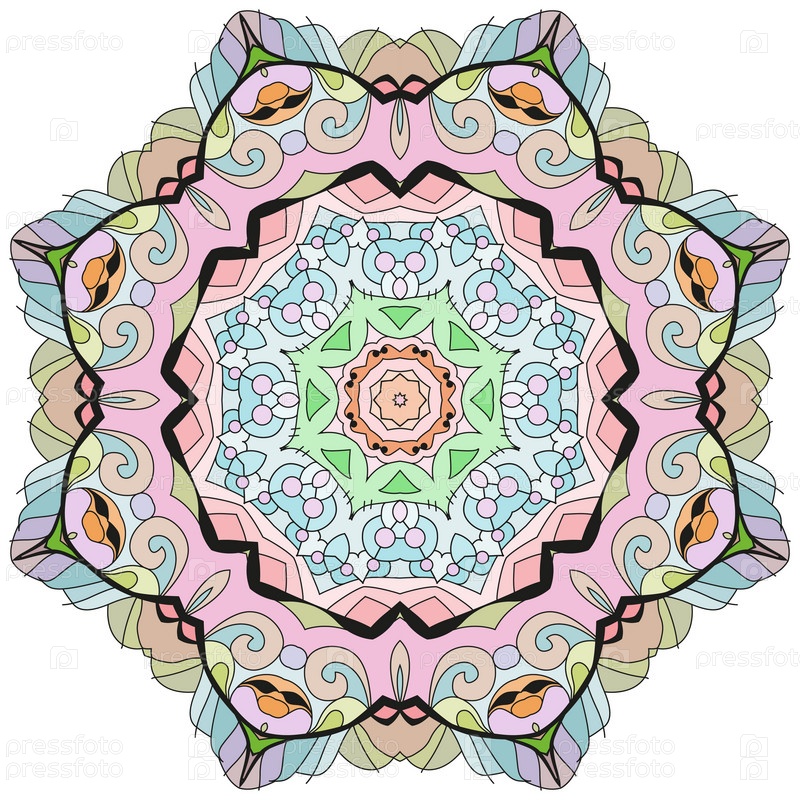 Декоративные круглые украшения. Необычная форма цветка. Восточный вектор, схемы антистрессовой терапии. Переплетение элементов дизайна. Вектор логотипов йоги
