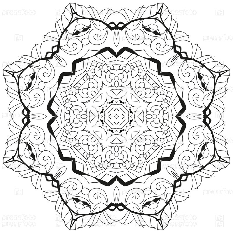 Декоративные круглые украшения. Необычная форма цветка. Восточный вектор, схемы антистрессовой терапии. Переплетение элементов дизайна