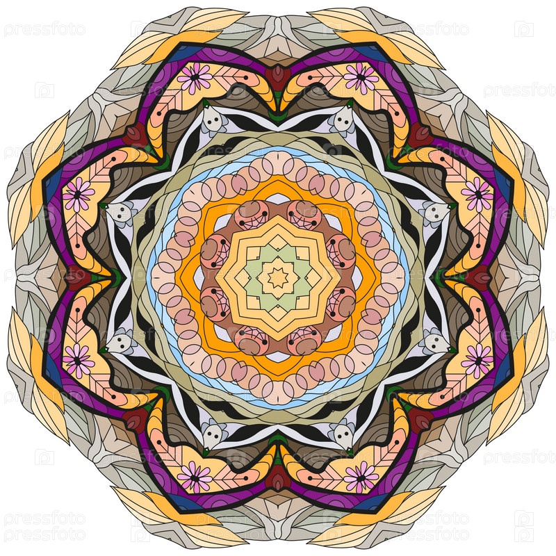 Декоративные круглые украшения. Необычная форма цветка. Восточный вектор, схемы антистрессовой терапии. Переплетение элементов дизайна. Вектор логотипов йоги