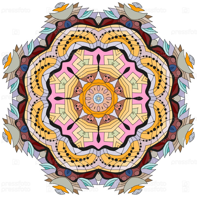 Декоративные круглые украшения. Необычная форма цветка. Восточный вектор, схемы антистрессовой терапии. Переплетение элементов дизайна. Вектор логотипов йоги