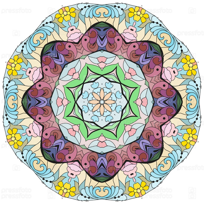 Декоративные круглые украшения. Необычная форма цветка. Восточный вектор, схемы антистрессовой терапии. Переплетение элементов дизайна. Вектор логотипов йоги
