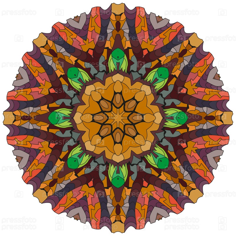Декоративные круглые украшения. Необычная форма цветка. Восточный вектор, схемы антистрессовой терапии. Переплетение элементов дизайна. Вектор логотипов йоги