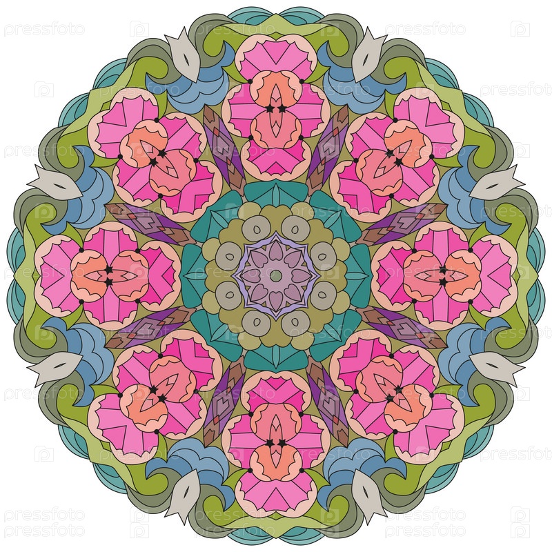 Декоративные круглые украшения. Необычная форма цветка. Восточный вектор, схемы антистрессовой терапии. Переплетение элементов дизайна. Вектор логотипов йоги