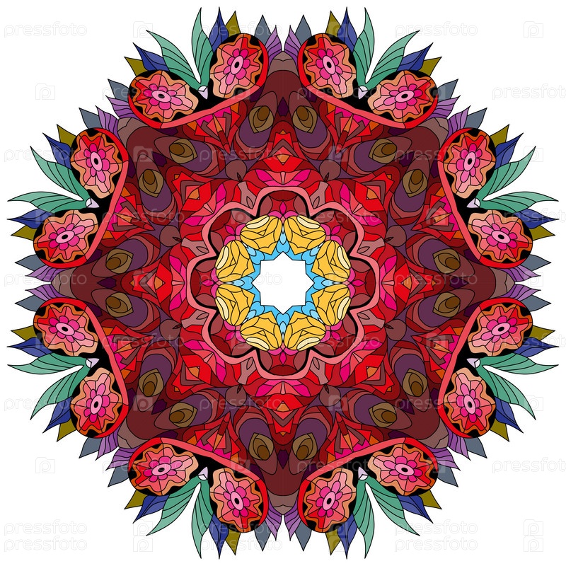 Декоративные круглые украшения. Необычная форма цветка. Восточный вектор, схемы антистрессовой терапии. Переплетение элементов дизайна. Вектор логотипов йоги