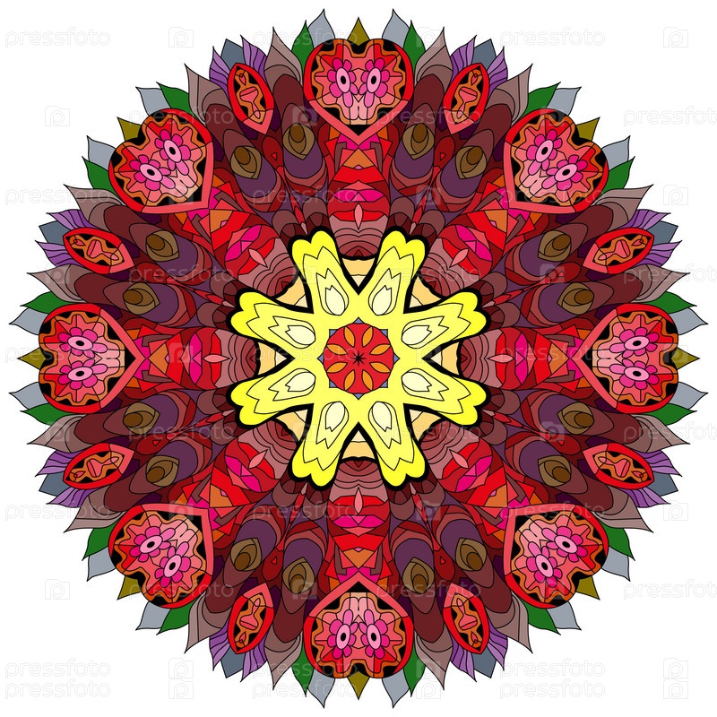 Декоративные круглые украшения. Необычная форма цветка. Восточный вектор, схемы антистрессовой терапии. Переплетение элементов дизайна. Вектор логотипов йоги