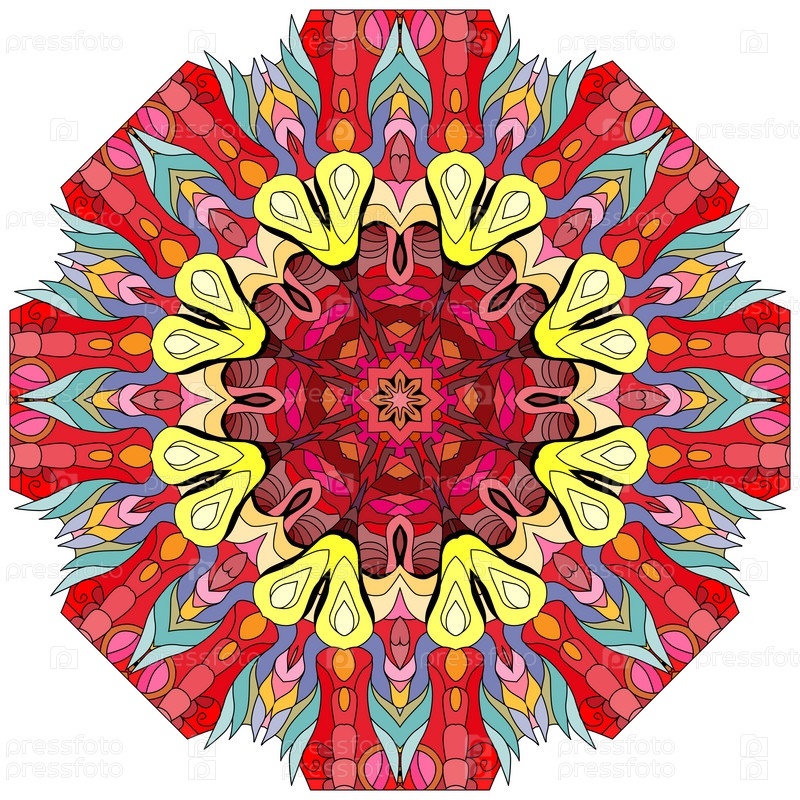 Декоративные круглые украшения. Необычная форма цветка. Восточный вектор, схемы антистрессовой терапии. Переплетение элементов дизайна. Вектор логотипов йоги