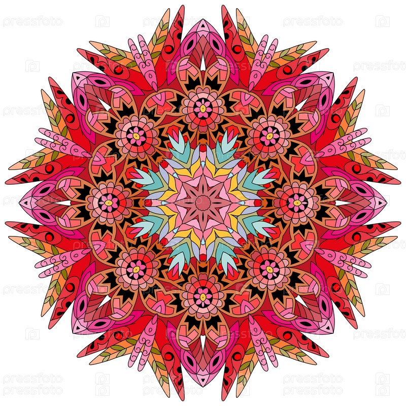 Декоративные круглые украшения. Необычная форма цветка. Восточный вектор, схемы антистрессовой терапии. Переплетение элементов дизайна. Вектор логотипов йоги