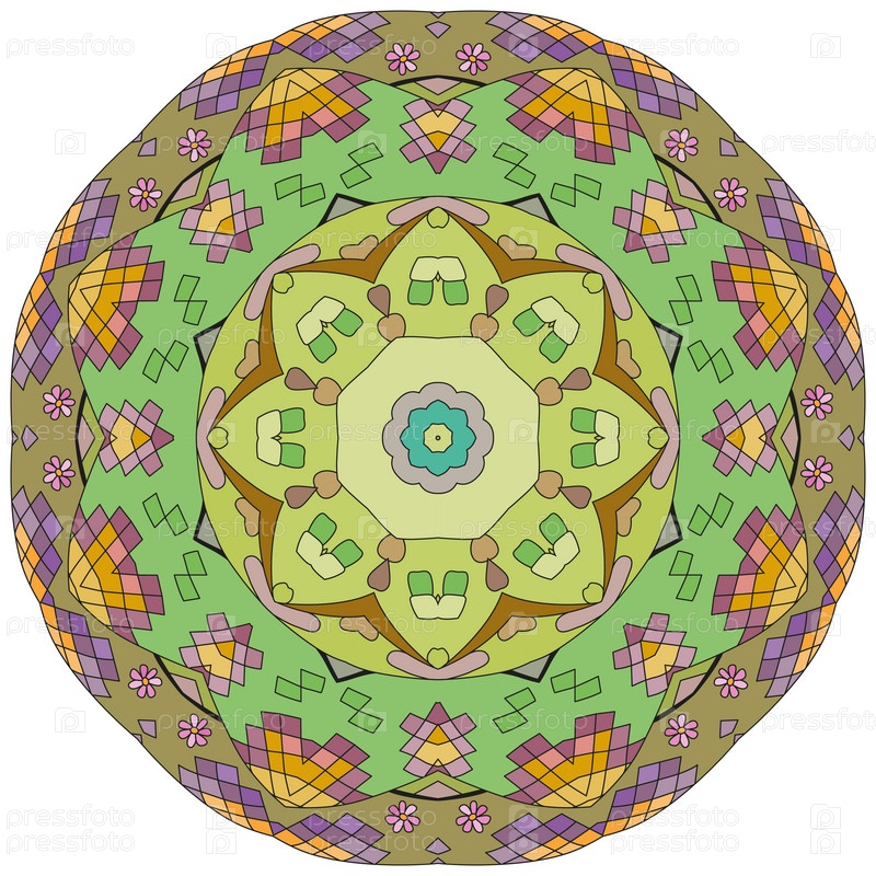 Декоративные круглые украшения. Необычная форма цветка. Восточный вектор, схемы антистрессовой терапии. Переплетение элементов дизайна. Вектор логотипов йоги