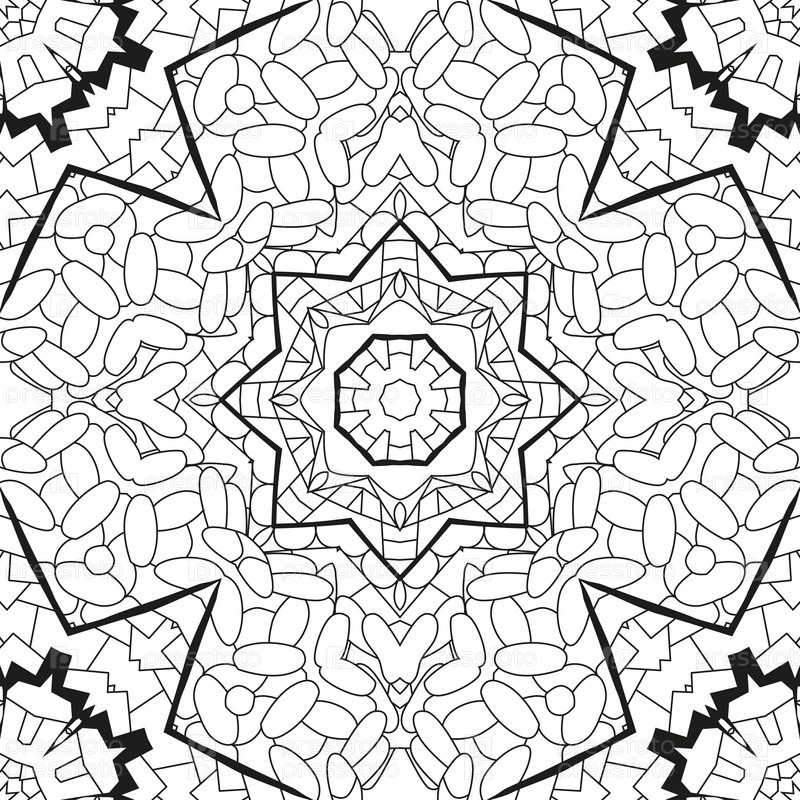 Векторная книжка-раскраска для взрослых без швов. Художественный дизайн ручной росписи. Антистрессовая раскраска для взрослых. Черно-белый ручной рисунок для книжки-раскраски