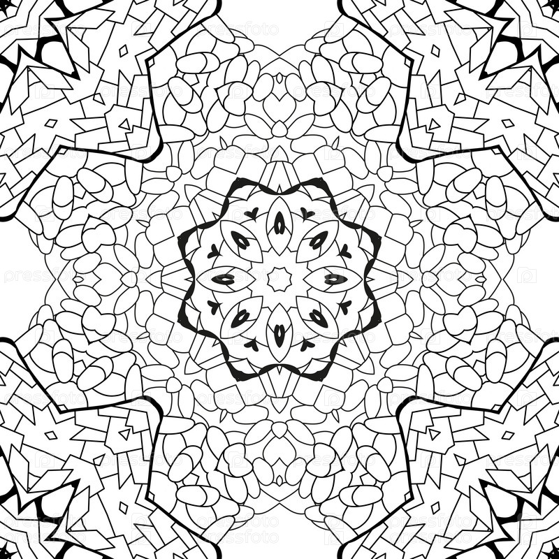 Векторная книжка-раскраска для взрослых без швов. Художественный дизайн ручной росписи. Антистрессовая раскраска для взрослых. Черно-белый ручной рисунок для книжки-раскраски