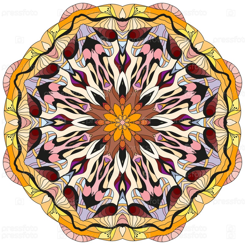 Декоративные круглые украшения. Необычная форма цветка. Восточный вектор, схемы антистрессовой терапии. Переплетение элементов дизайна. Вектор логотипов йоги