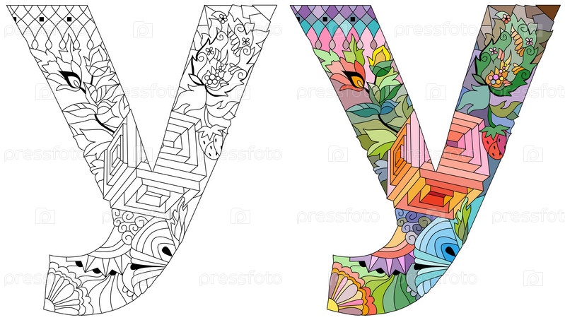 Русский алфавит кириллическая заглавная буква U. Векторальная иллюстрация Набор цветов и контуров