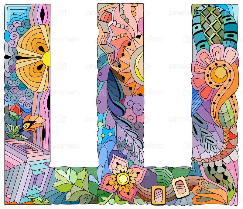 Художественный дизайн рукописных росписей.Буква SH кириллический зэнтангл объект