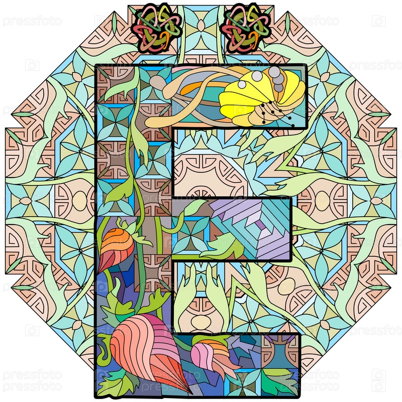 Русский алфавит кириллическая заглавная буква Йо на мандале. Векторная иллюстрация