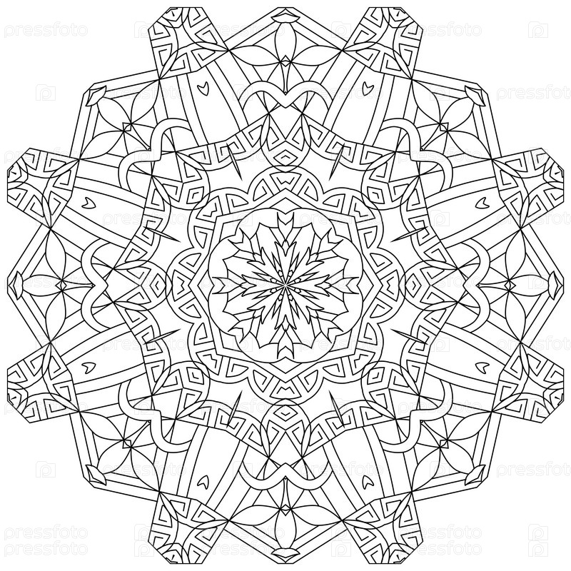 Круговой орнамент ручной работы для раскраски страницы