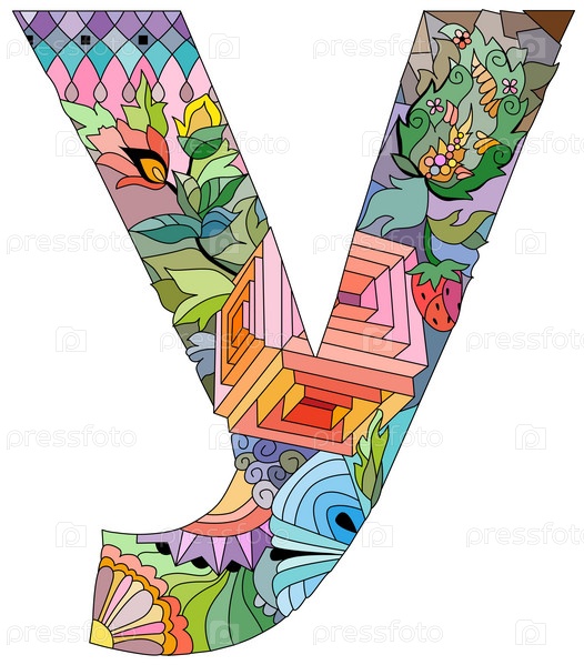 Художественный дизайн рукописных росписей.Буква U кириллический зэнтангл объект
