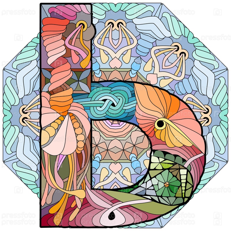 Мягкий знак русского алфавита кириллицы на мандале. Векторная иллюстрация для украшения