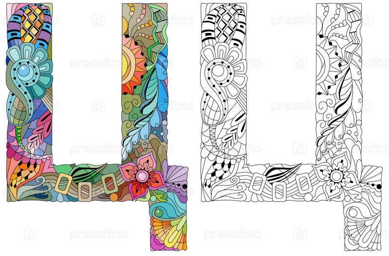 Русский Алфавит Кириллица Заглавная буква ТС. Векторная иллюстрация. Набор цветов и контуров