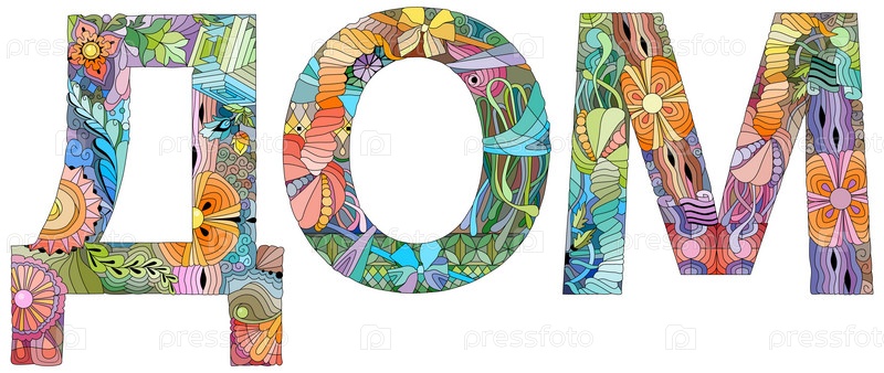 Слово ДОМ на русском языке. Красочное векторное слово на белом фоне