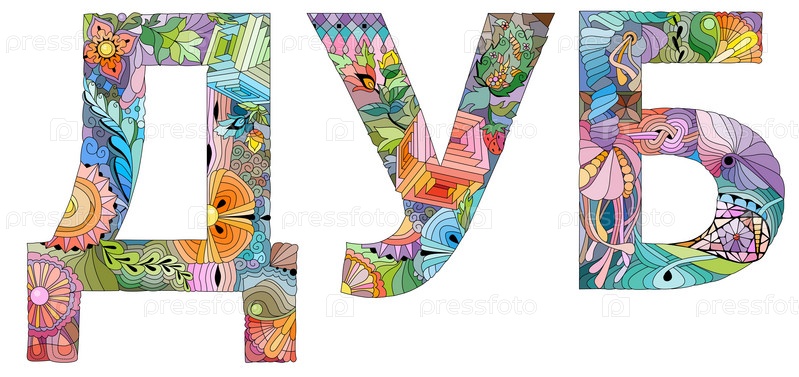 Художественный дизайн ручной росписи. Ручной рисунок слова ДУБ на русском языке для футболки и других украшений