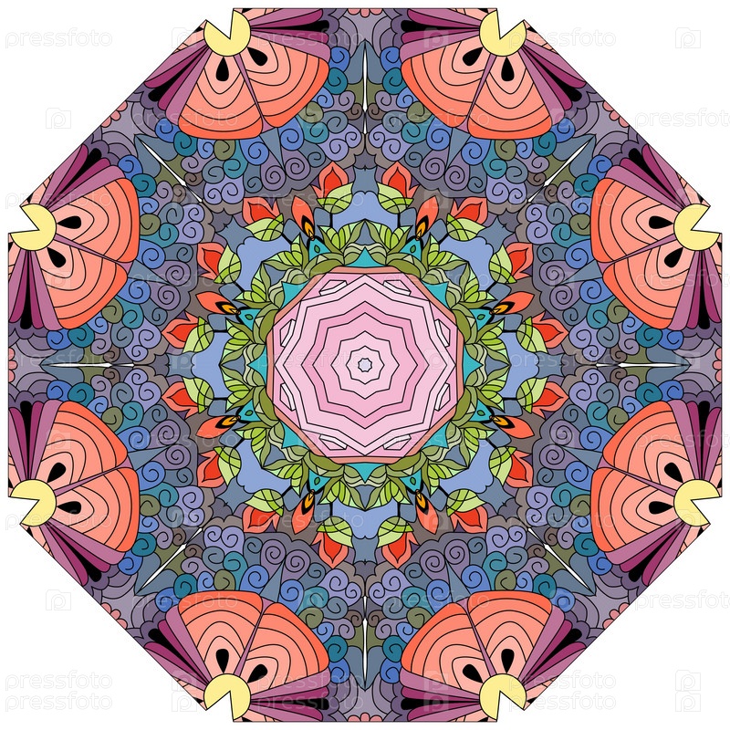 Декоративные круглые украшения. Необычная форма цветка. Восточный вектор, схемы антистрессовой терапии. Переплетение элементов дизайна. Вектор логотипов йоги
