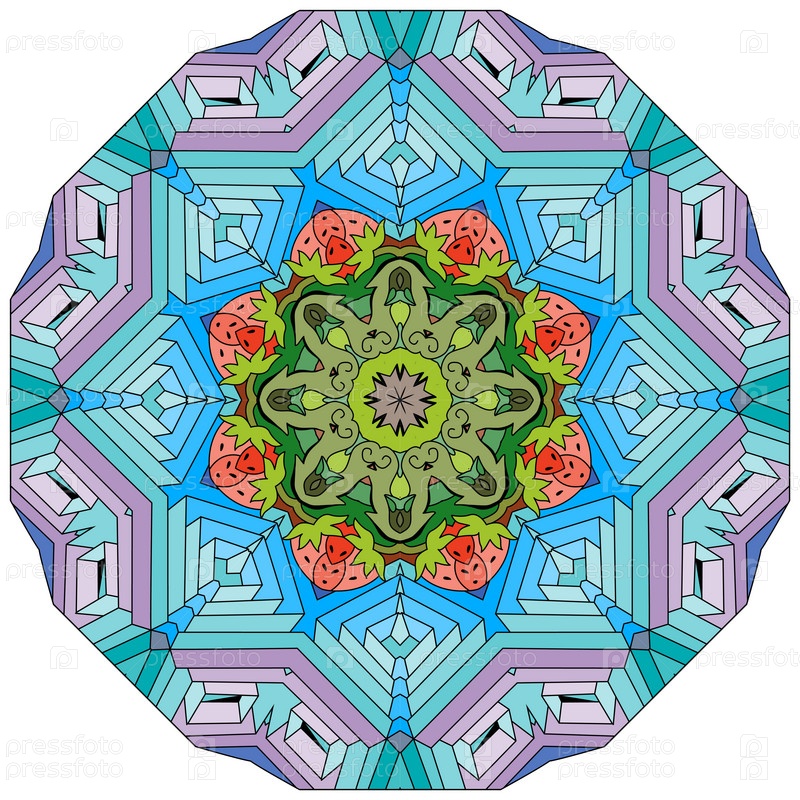 Декоративный круглый орнамент. Необычная форма цветка. Восточный вектор, схемы антистрессовой терапии. Переплетение элементов дизайна. Вектор логотипов йоги