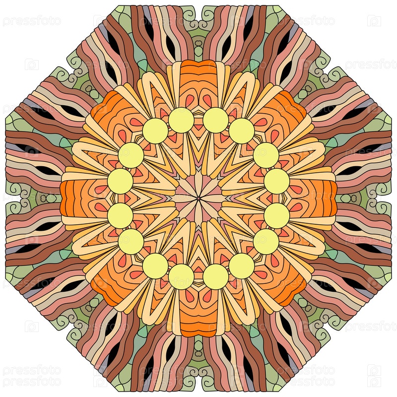 Декоративный круглый орнамент. Необычная форма цветка. Восточный вектор, схемы антистрессовой терапии. Переплетение элементов дизайна. Вектор логотипов йоги
