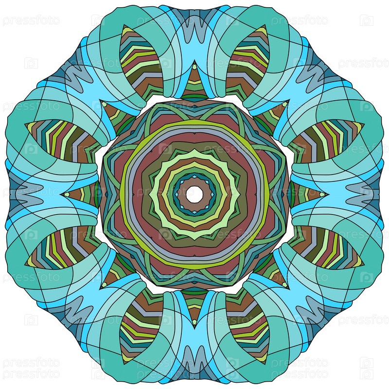 Декоративный круглый орнамент. Необычная форма цветка. Восточный вектор, схемы антистрессовой терапии. Переплетение элементов дизайна. Вектор логотипов йоги