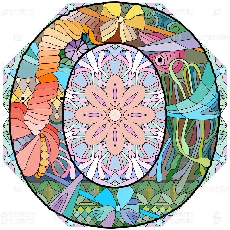 Монограмма буквы О, гравировка на мандале. Векторная иллюстрация