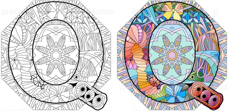 Zentangle стилизованный алфавит - буква Q на мандале для окраски. векторная иллюстрация. этнический узор
