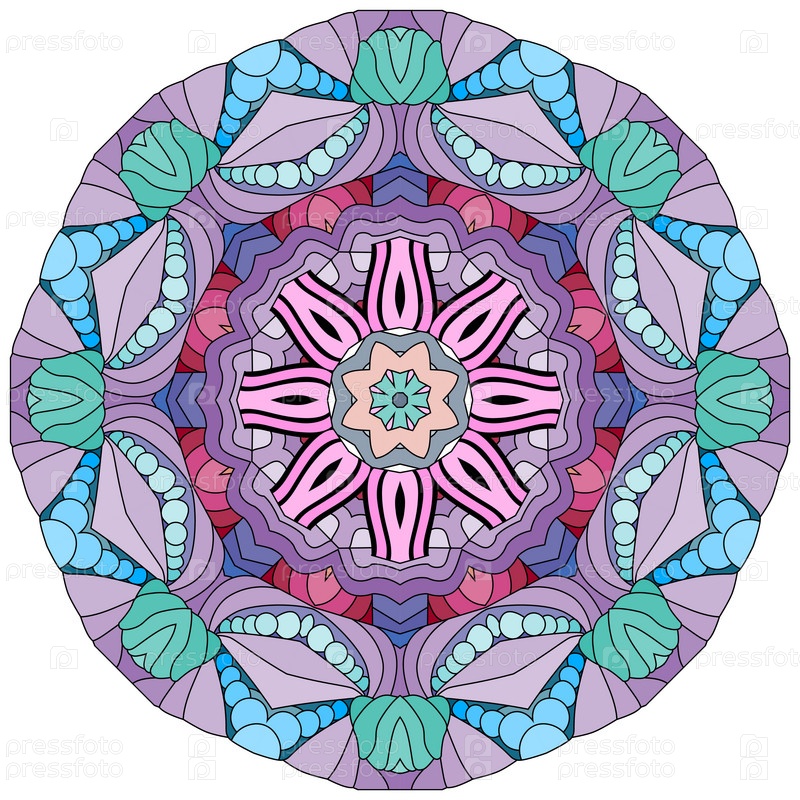 Декоративный круглый орнамент. Необычная форма цветка. Восточный вектор, схемы антистрессовой терапии. Переплетение элементов дизайна. Вектор логотипов йоги