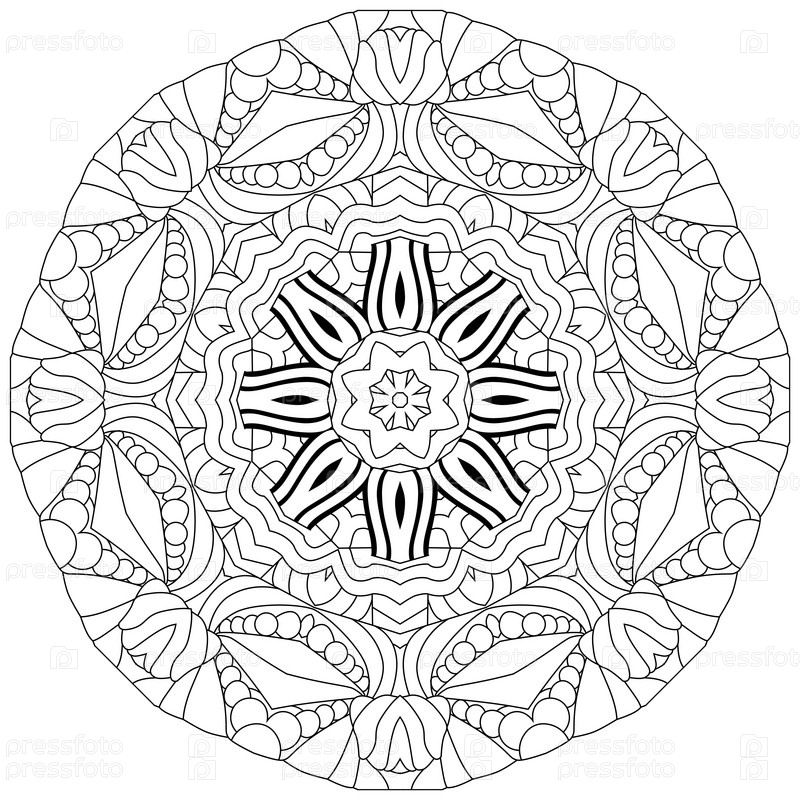 Круговой орнамент ручной работы для раскраски страницы