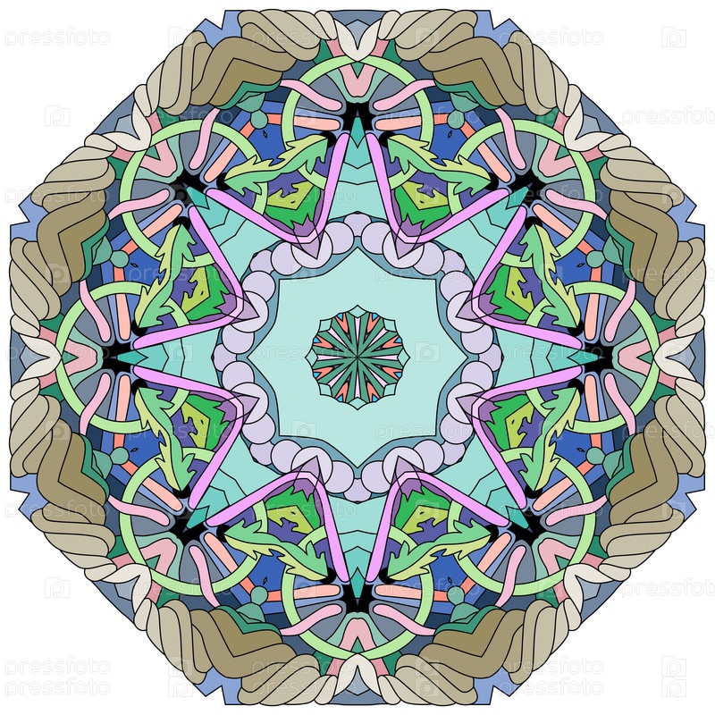 Декоративный круглый орнамент. Необычная форма цветка. Восточный вектор, схемы антистрессовой терапии. Переплетение элементов дизайна. Вектор логотипов йоги
