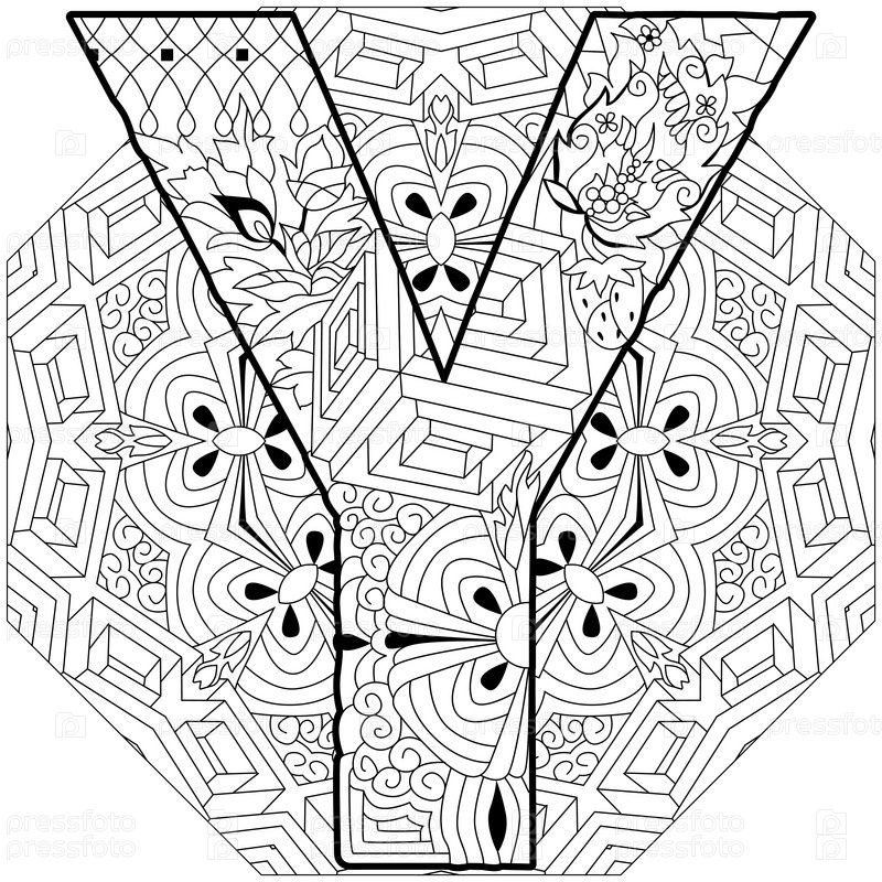 Монограмма буквы Y, гравюра на мандале для окраски. векторная иллюстрация
