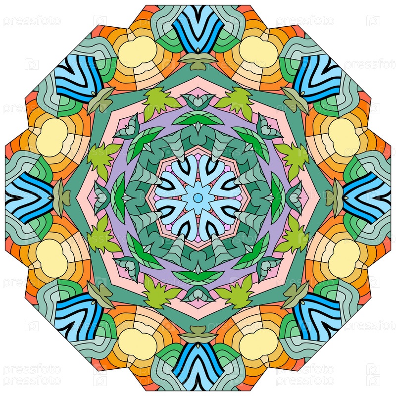 Декоративный круглый орнамент. Необычная форма цветка. Восточный вектор, схемы антистрессовой терапии. Переплетение элементов дизайна. Вектор логотипов йоги