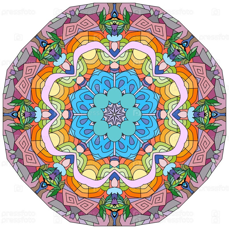 Декоративный круглый орнамент. Необычная форма цветка. Восточный вектор, схемы антистрессовой терапии. Переплетение элементов дизайна. Вектор логотипов йоги