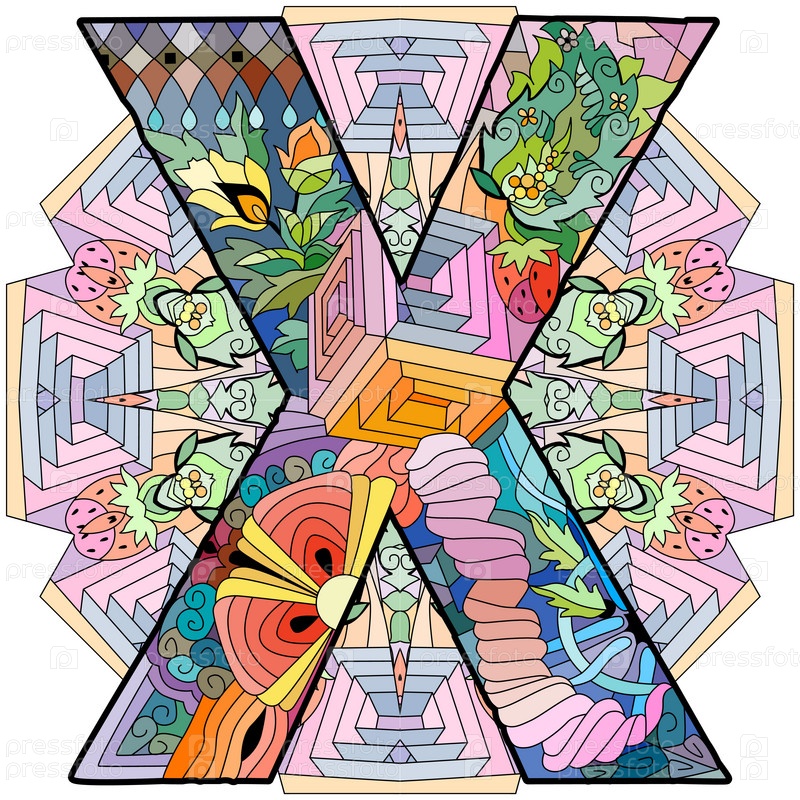 Zentangle стилизованный алфавит - буква X на мандале. векторная иллюстрация. этнический шаблон