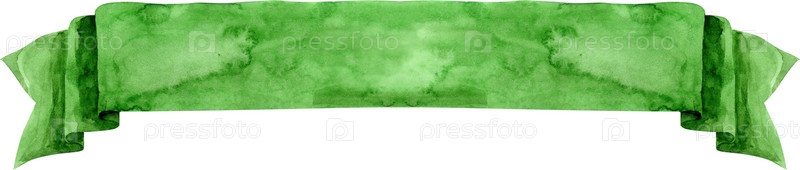 Акварель рисованной иллюстрации. Зеленый развевающийся флаг или знамя
