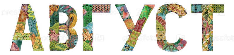 Художественный дизайн ручной росписи. Нарисованное вручную иллюстративное слово август на русском языке для футболки и других украшений