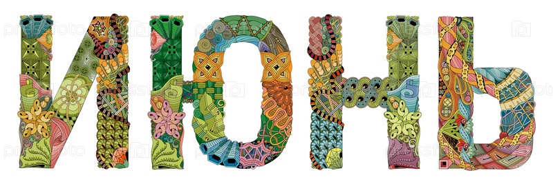 Художественный дизайн ручной росписи. Нарисованное вручную иллюстративное слово июнь на русском языке для футболки и других украшений