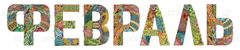 Художественный дизайн ручной росписи. Нарисованное рукой слово иллюстрации февраль на русском языке для футболки и других украшений