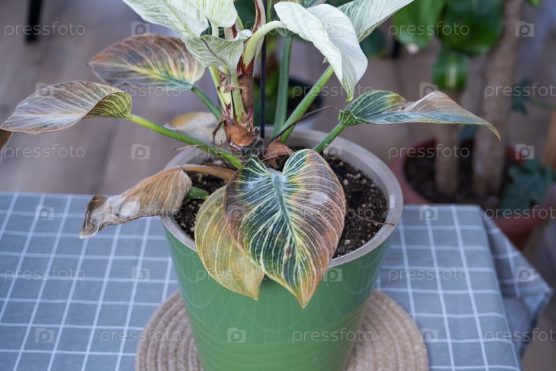 Проблемы при выращивании домашних растений Филодендрон Биркин - пораженные паутинным клещом листья, желтые и сухие кончики, перелив растения, загнивание корней. Обработка растений и борьба с вредителями и грибками