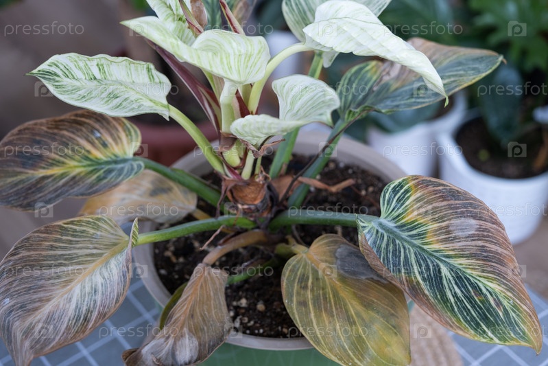 Проблемы при выращивании домашних растений Филодендрон Биркин - пораженные паутинным клещом листья, желтые и сухие кончики, перелив растения, загнивание корней. Обработка растений и борьба с вредителями и грибками