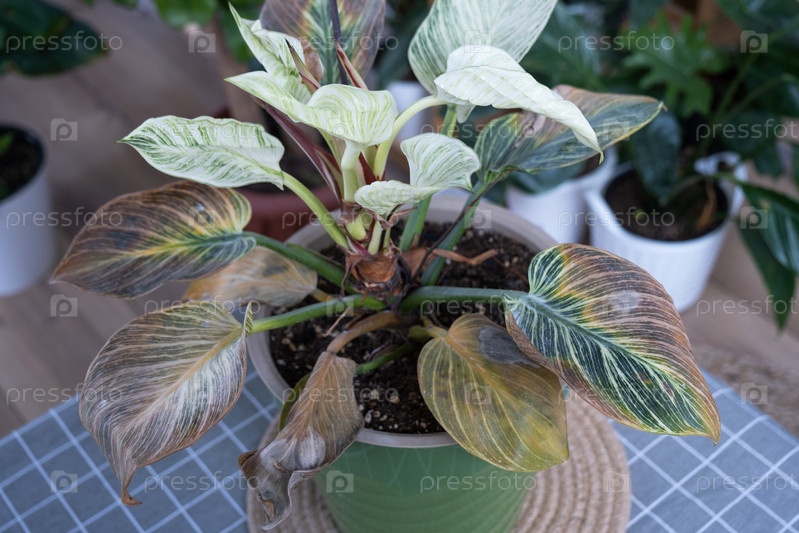 Проблемы при выращивании домашних растений Филодендрон Биркин - пораженные паутинным клещом листья, желтые и сухие кончики, перелив растения, загнивание корней. Обработка растений и борьба с вредителями и грибками